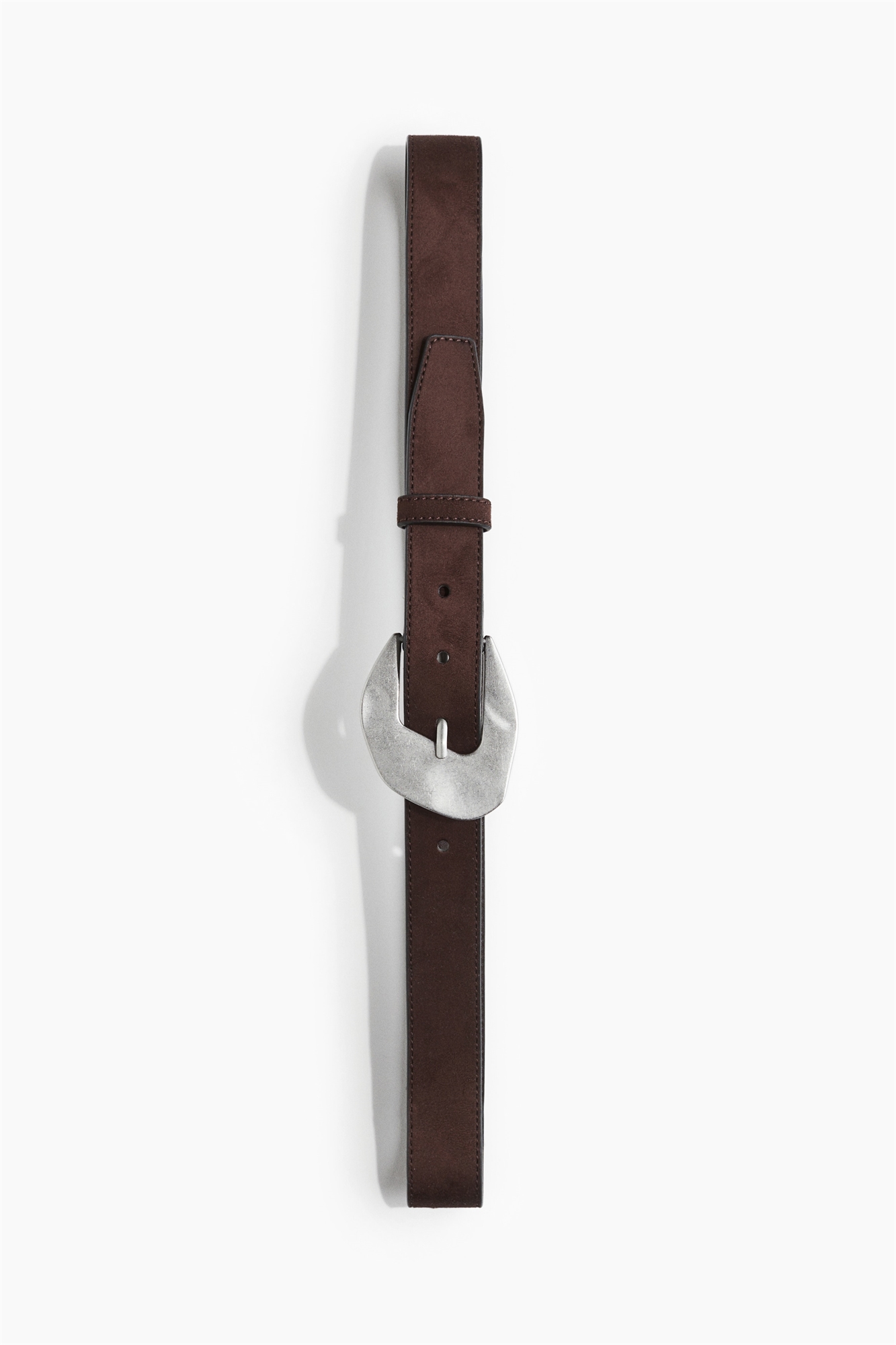 Ремень из ткани с покрытием и асимметричной металлической пряжкой с потертым видом.