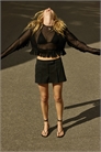 Мини-юбка из тканого материала с ширинкой на молнии и удлиненным поясом с застежками-крючками. Диагональные боковые карманы, втачной карман сзади и складки спереди.