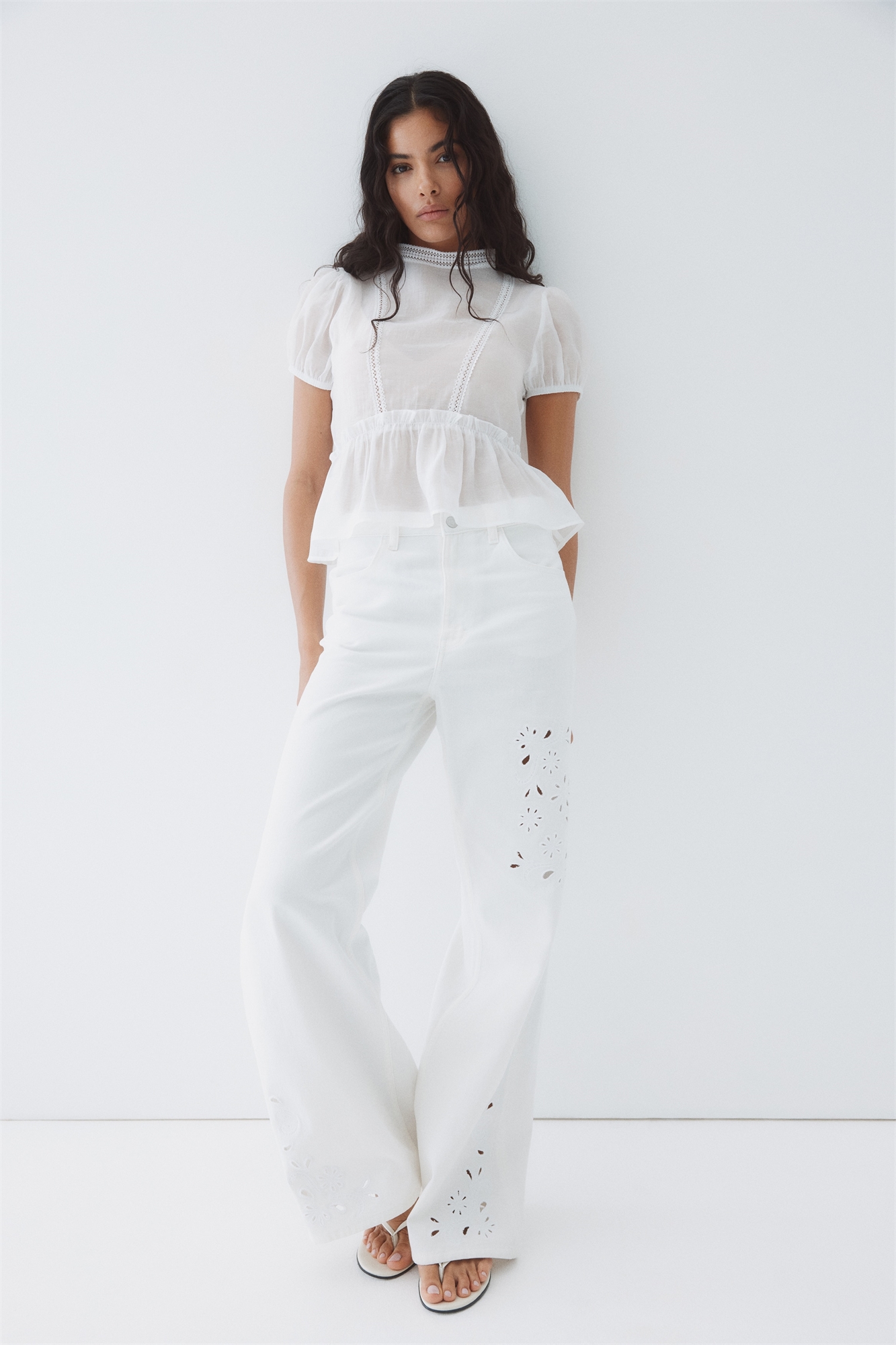 Блузка с кружевными вставками и пеплумом