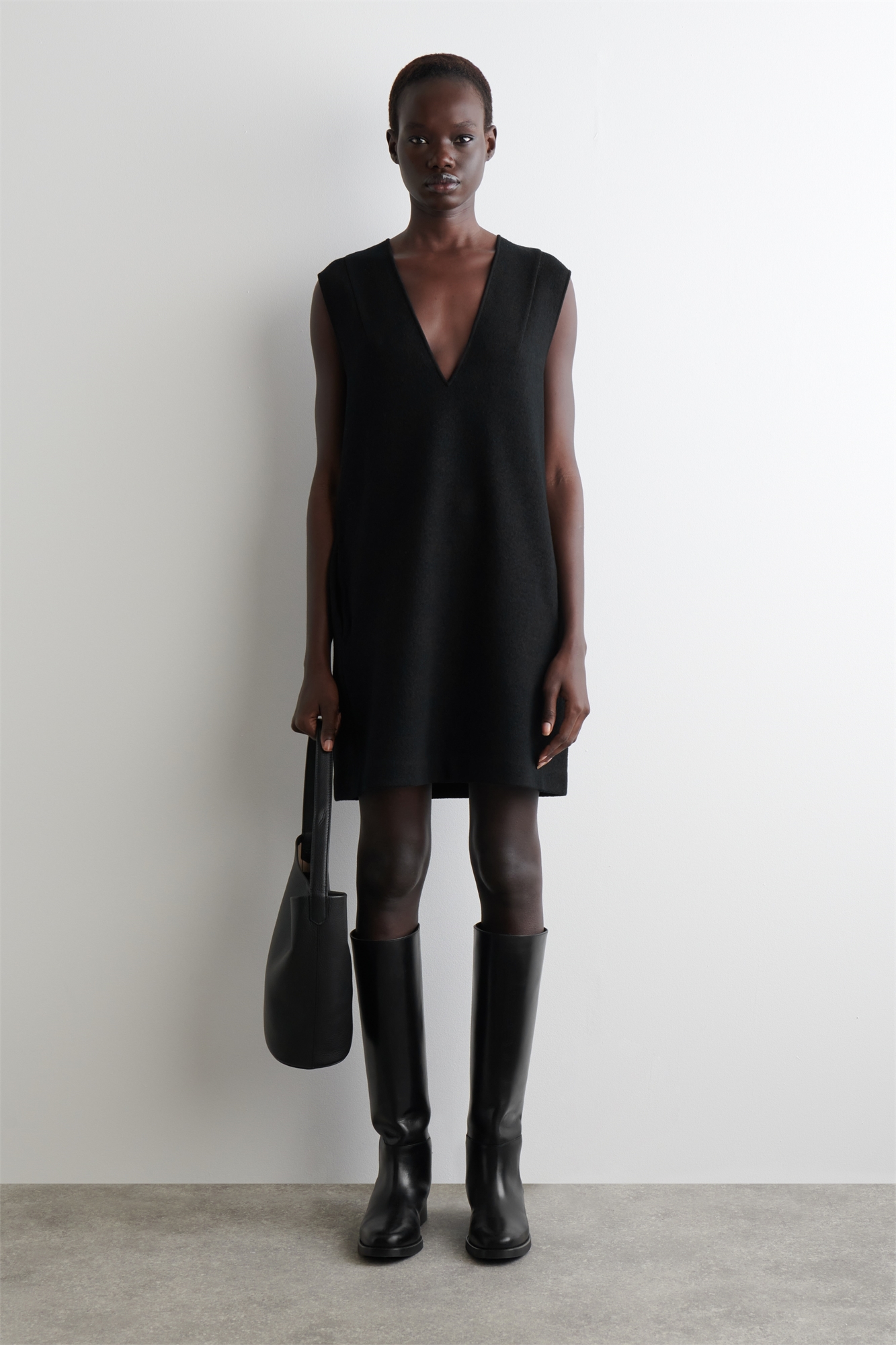 Это современное мини-платье легко подойдет для переходного стиля. Выполненное в классическом черном цвете, оно сшито из мягкой смеси мериносовой шерсти, которая варится для тактильности, и имеет фигурные швы, формирующие силуэт. Наденьте ее поверх футболки. Свободный кройБоковые карманыЭто изделие содержит шерстяное волокно Responsible Wool Standard TE-00047206 (RWS) с ферм, сертифицированных в соответствии с требованиями к благополучию животных и землепользованию Состав: 50% мериносовая шерсть, 32% хлопок, 18% переработанный полиэстер. Без учета отделки / Сухая чистка Длина по спинке для размера S составляет 87 см / Модель носит размер S