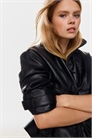 Короткая куртка из ткани с покрытием, воротник с ребристой подкладкой из джерси. Застежка-молния спереди, формирующие швы спереди и сзади и перевернутая складка сзади для придания дополнительной ширины. Накладные передние карманы с клапаном и дополнительный накладной карман сверху. Спущенные плечи, длинные рукава и манжеты с застежкой на кнопки. На подкладке.