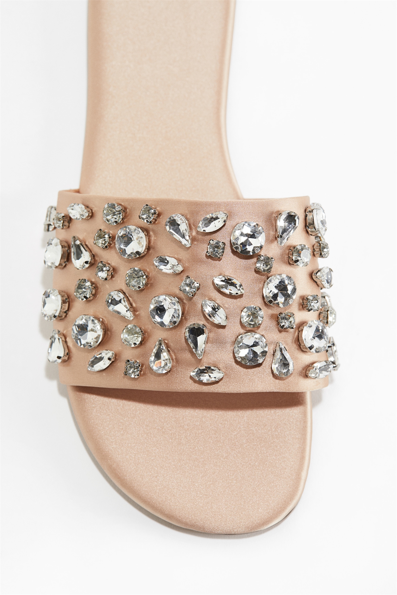 Сандалии из тканого материала с закругленными носками и широким украшенным ремешком. Подкладка из джерси.