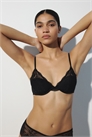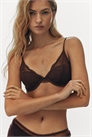 Бюстгальтер из кружева с регулируемыми бретелями и мягкими чашечками с заниженной посадкой, которые придают форму бюсту и обеспечивают хорошую поддержку. Застежка на крючки и глазки сзади.