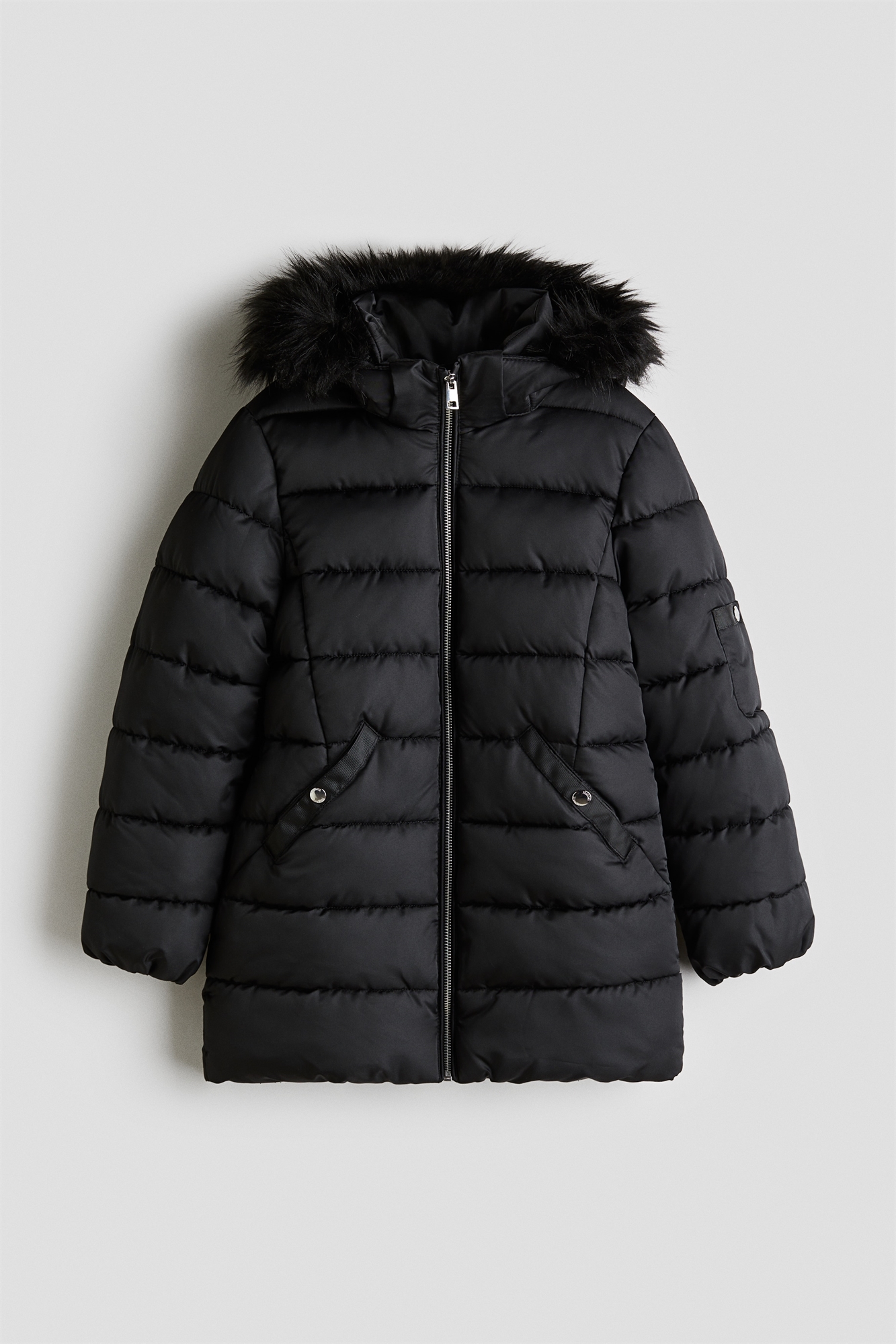 Пуховая куртка со съемным капюшоном с пушистой отделкой, воротником-стойкой и застежкой-молнией спереди. Накладные боковые карманы и накладной карман на рукаве с застежкой на кнопки. Эластичная резинка на талии сзади и эластичная резинка на манжетах. На подкладке.