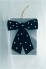 Большой бархатный бант, украшенный жемчужно-белыми бусинами, с петелькой для подвешивания. В зависимости от стиля он может придать вашему праздничному декору как причудливое очарование, так и классическую элегантность.