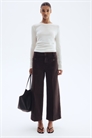 Джинсы из хлопкового денима с легким стретчем для комфорта. Широкая посадка от талии до бедер и широкий крой от бедра до подола. Высокая талия, ширинка на молнии и пуговице, передние карманы на пуговицах, открытые задние карманы и складки спереди. Длина по щиколотку, рассчитанная на то, чтобы доходить до косточки лодыжки. Эффектно смотрятся независимо от того, как вы их носите.