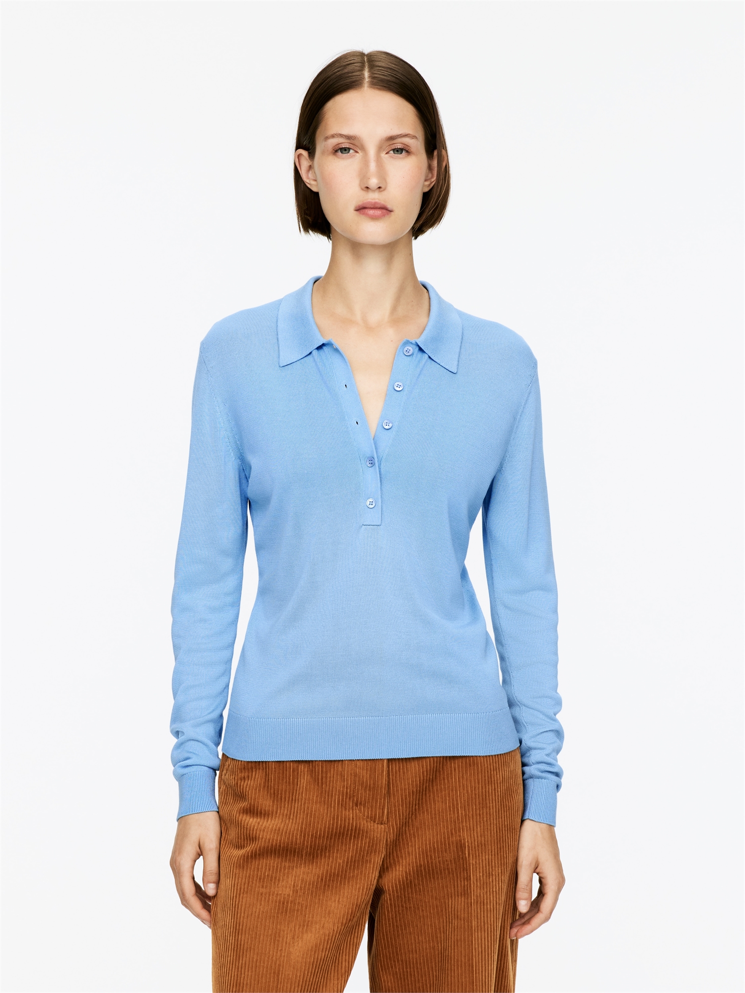 Трикотажная рубашка-поло из смеси модала, свободный крой и длинные рукава.
