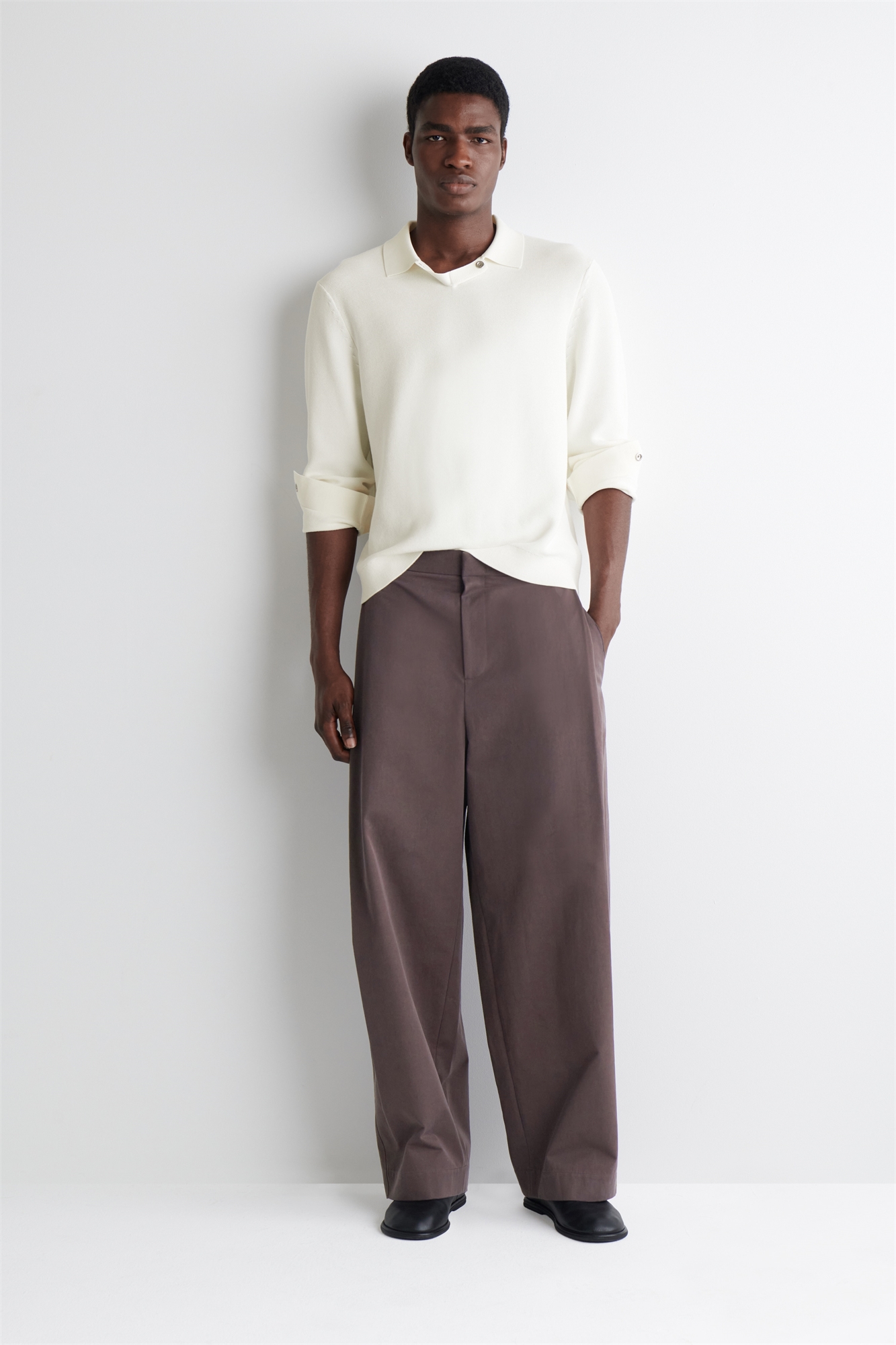 Брюки с широкими штанинами являются визитной карточкой гардероба COS. Созданные из легкой хлопковой саржи, они имеют непринужденную форму с точными складками, петлями для ремня и боковыми карманами. Свободный кройЗастежка на крючок, планку и молнию Оболочка и подкладка карманов: 100% хлопок. Без учета отделки / Машинная стирка Внутренняя длина ноги размера EU 48 составляет 74,7 см / Модель носит размер EU 48