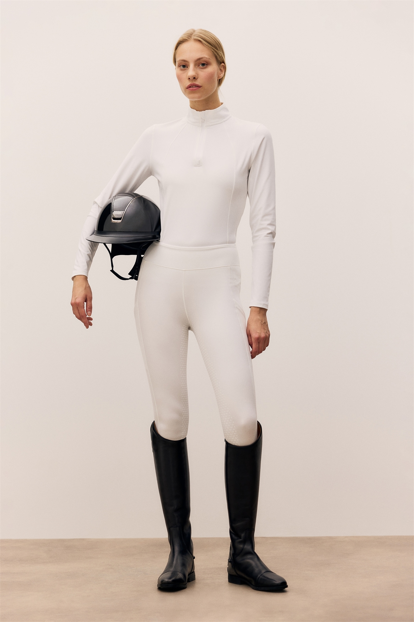 Леггинсы для верховой езды из быстросохнущей и дышащей функциональной ткани с четырехсторонней растяжкой для дополнительного комфорта и свободы движений. Высокая талия с широким поясом и боковые карманы с местом для мобильного телефона. Полностью силиконовый захват для максимальной фиксации в седле. Эластичная резинка по краям.