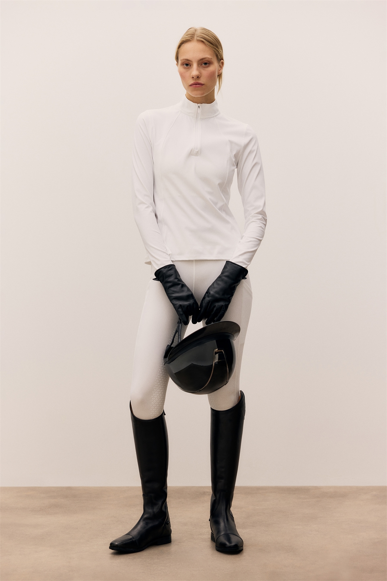 Спортивный топ с длинными рукавами из быстросохнущего, дышащего трикотажа, с воротником-стойкой и застежкой-молнией в верхней части, с защитой подбородка от натирания.