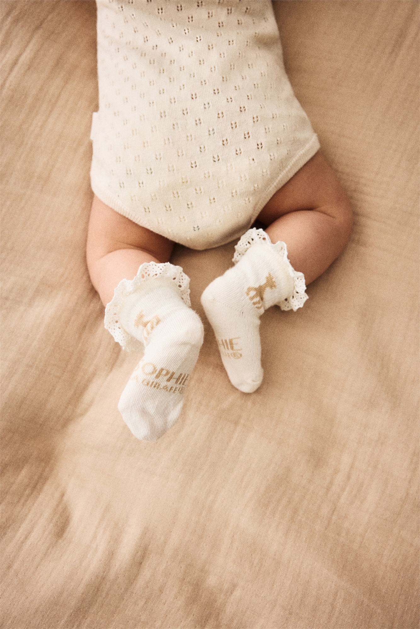 H&M x Sophie la girafe. Носки из мягкого хлопкового микса тонкой вязки с узором интарсия. Эластичный верх с кружевной отделкой.