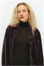Свободная рубашка из мягкого ребристого велюра с отложным воротником, пуговицами спереди и накладным нагрудным карманом. Длинные рукава с разрезом и пуговицей на манжетах. Подол прямого кроя с закругленными боковыми вентиляционными отверстиями.