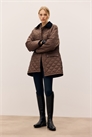 Куртка для конюшни на легкой подкладке с ромбовидным стеганым переплетением и мягким вельветовым воротником. Диагональные карманы для согревания рук и накладные передние карманы с застежкой на кнопки. Узкие ребристые манжеты и высокие боковые разрезы с застежками на кнопках по подолу. На груди вышитый мотив. На подкладке.