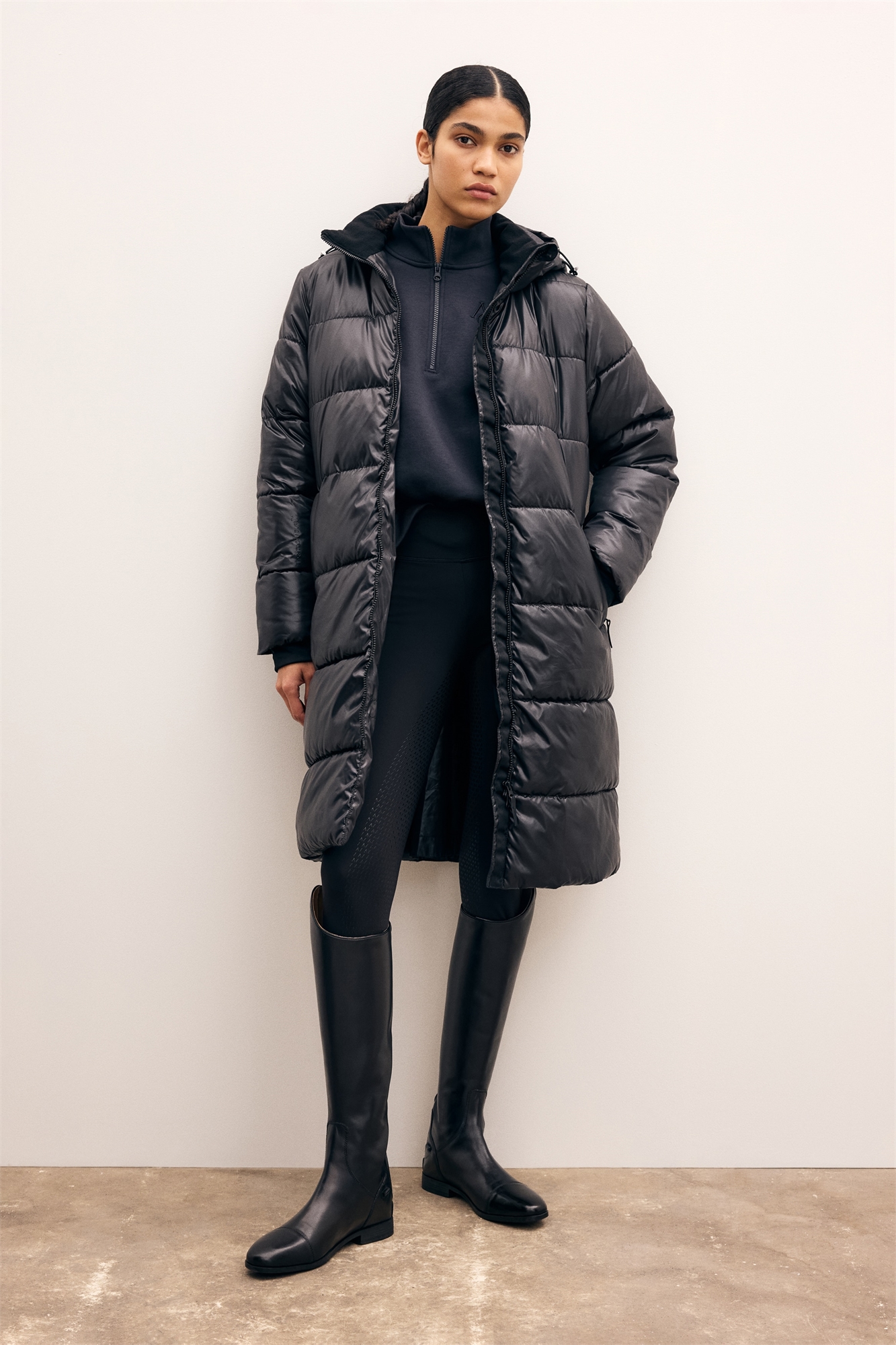 Длинное стеганое пальто из ветрозащитной и водоотталкивающей функциональной ткани ThermoMove™, которая согреет вас при понижении температуры. Съемный капюшон с кнопками и завязками, двусторонняя молния спереди с защитой подбородка от натирания, боковые карманы на молнии и эластичная талия. Сзади разрез на кнопках.