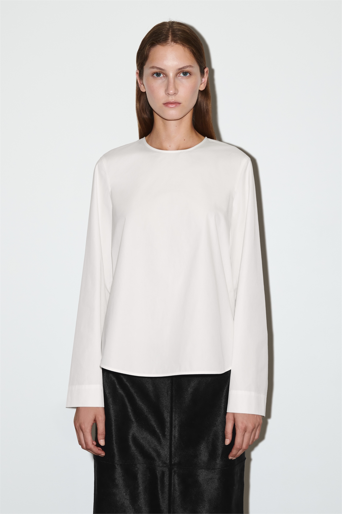 Сдержанные и в то же время отточенные силуэты стали основой коллекции осень-зима 2025. Эта изысканная блузка сшита из хрустящего хлопка и украшена изогнутым подолом и тональными перламутровыми пуговицами на манжетах для сдержанной отделки. Regular fitЗастежка на пуговицы Материал: 100% хлопок. Без учета отделки / Машинная стирка Длина по спинке для размера EU 36 составляет 64,1 см / Модель носит размер EU 36