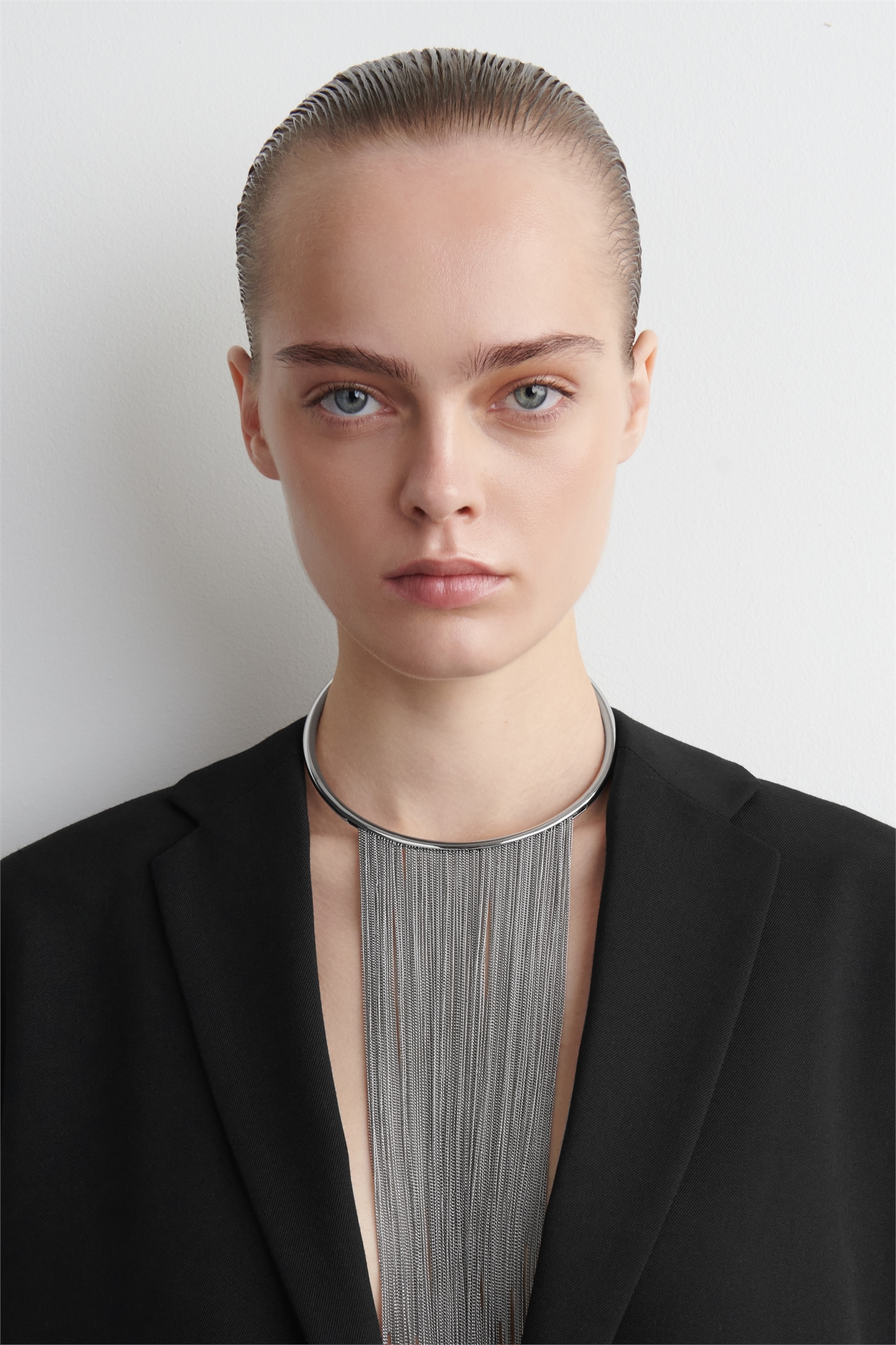 В этом сезоне ювелирные дизайнеры COS воплотили в жизнь искусство простых, но эффектных силуэтов. Созданное из посеребренной переработанной латуни, это яркое колье украшено удлиненными кисточками, которые каскадом спадают с тонкой цепочки.