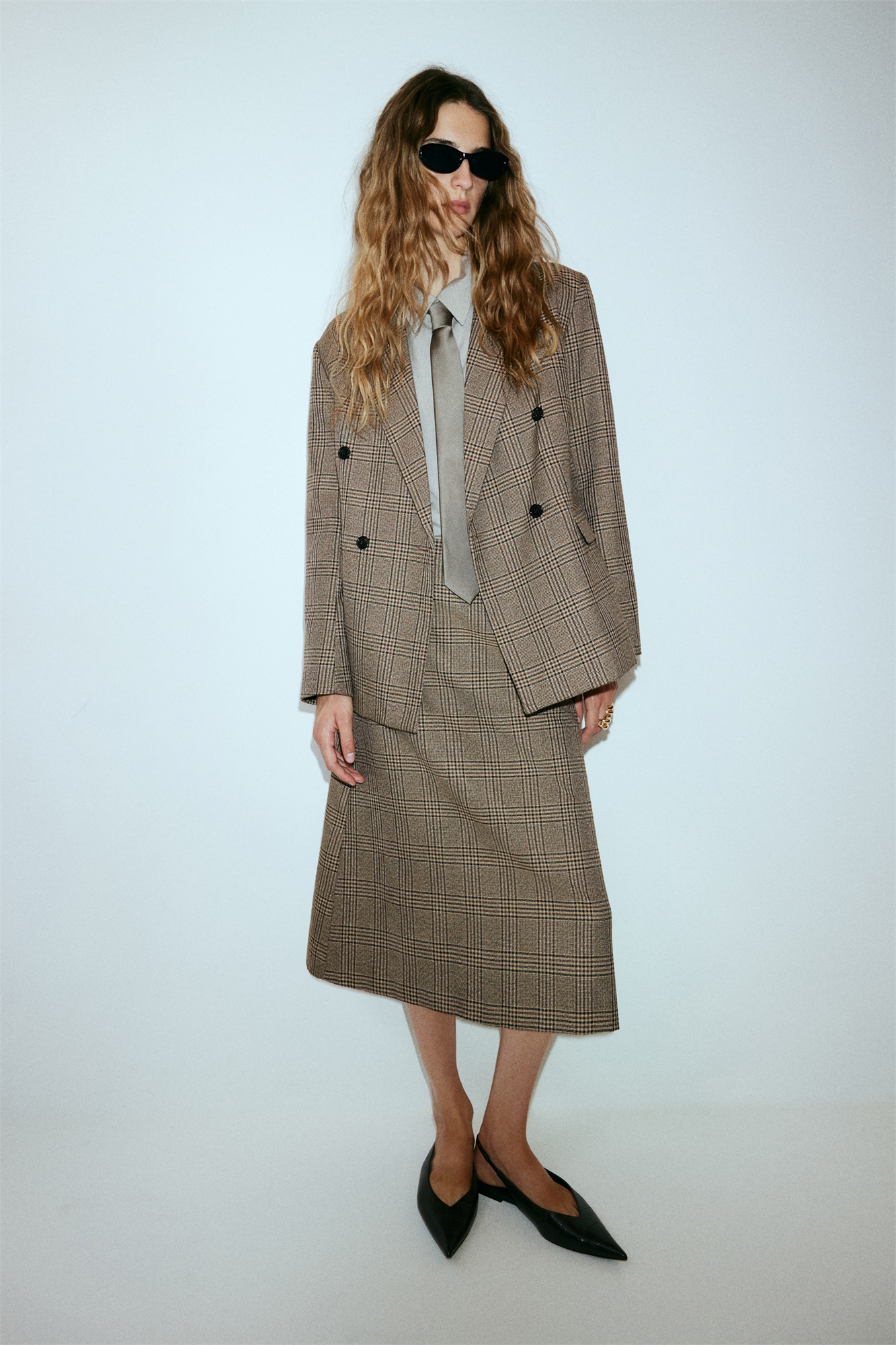 Юбка длиной до колена из тканого материала с высокой талией с формирующими вытачками и потайной застежкой на молнию и крючок-глаз сзади. Скрытые боковые карманы и разрез сзади.