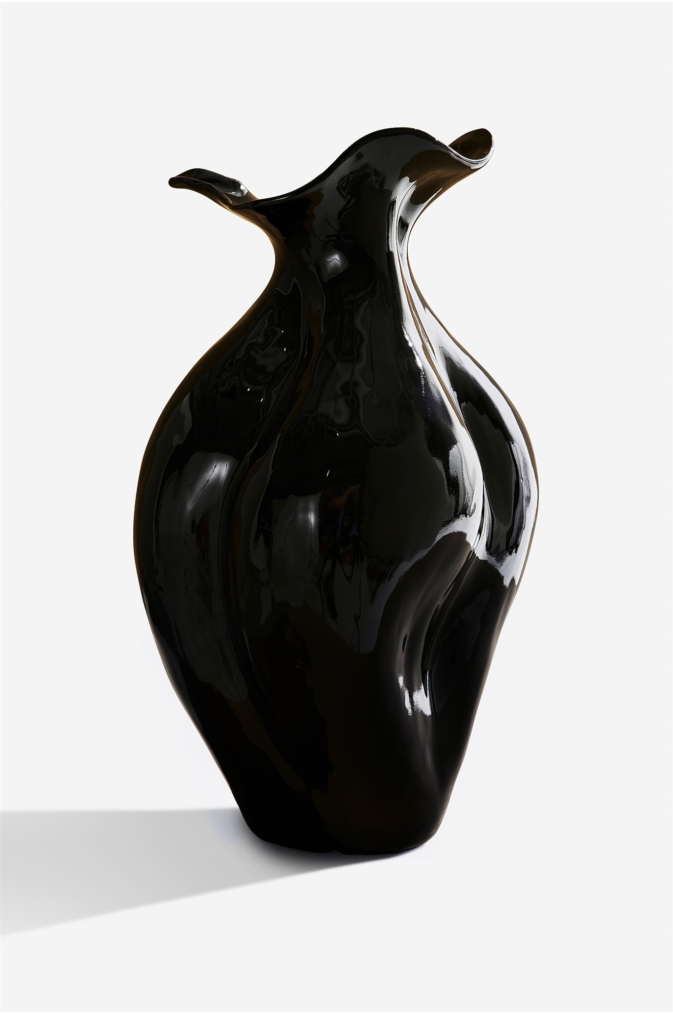 Керамическая ваза ручной работы имеет красивую глазурованную черную отделку. С помощью этой вазы можно заявить о себе или использовать ее для своих любимых цветов. Ваза гарантированно привлечет внимание. Диаметр: 26 см. Высота: 46 см.