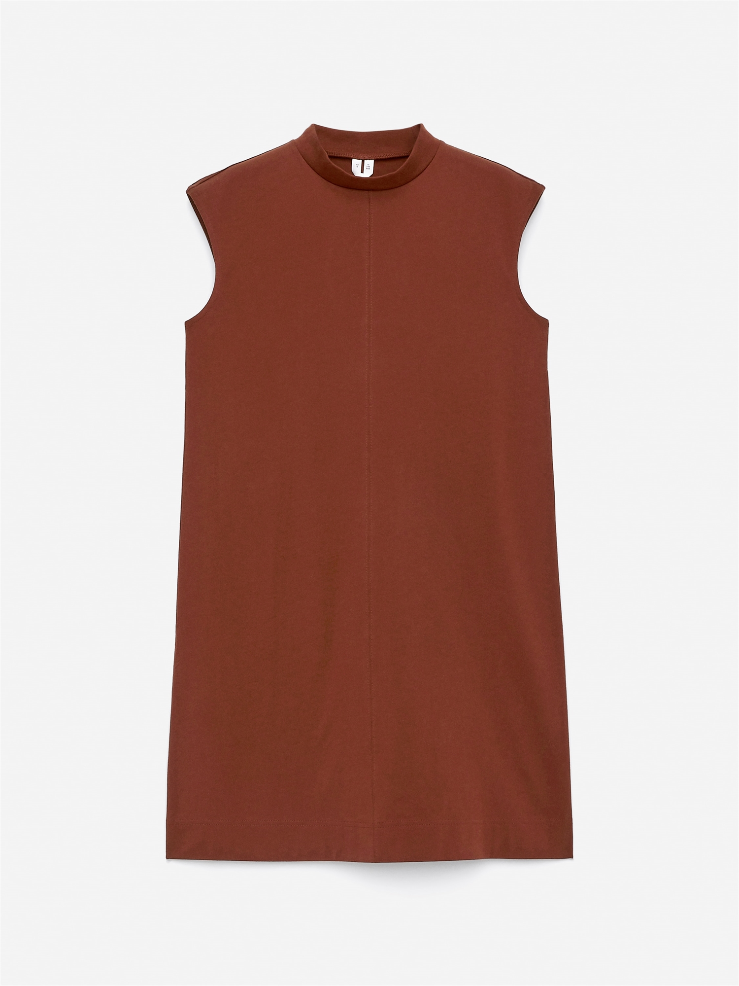 Короткое хлопковое платье А-линии с рукавами-кап. Горловина из трикотажа в рубчик и разъемный шов по центру спины.
