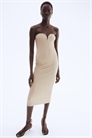 Приталенное платье-бандо длиной до колен из фактурного джерси с вырезом в форме сердца с металлической проволокой и скрытой силиконовой отделкой.