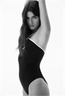 Полностью закрытый купальник с вырезом спереди и узкими регулируемыми бретелями. Чашечки с мягкой подкладкой придают форму бюсту и обеспечивают хорошую поддержку. Ноги с высоким вырезом и вырезом сзади.