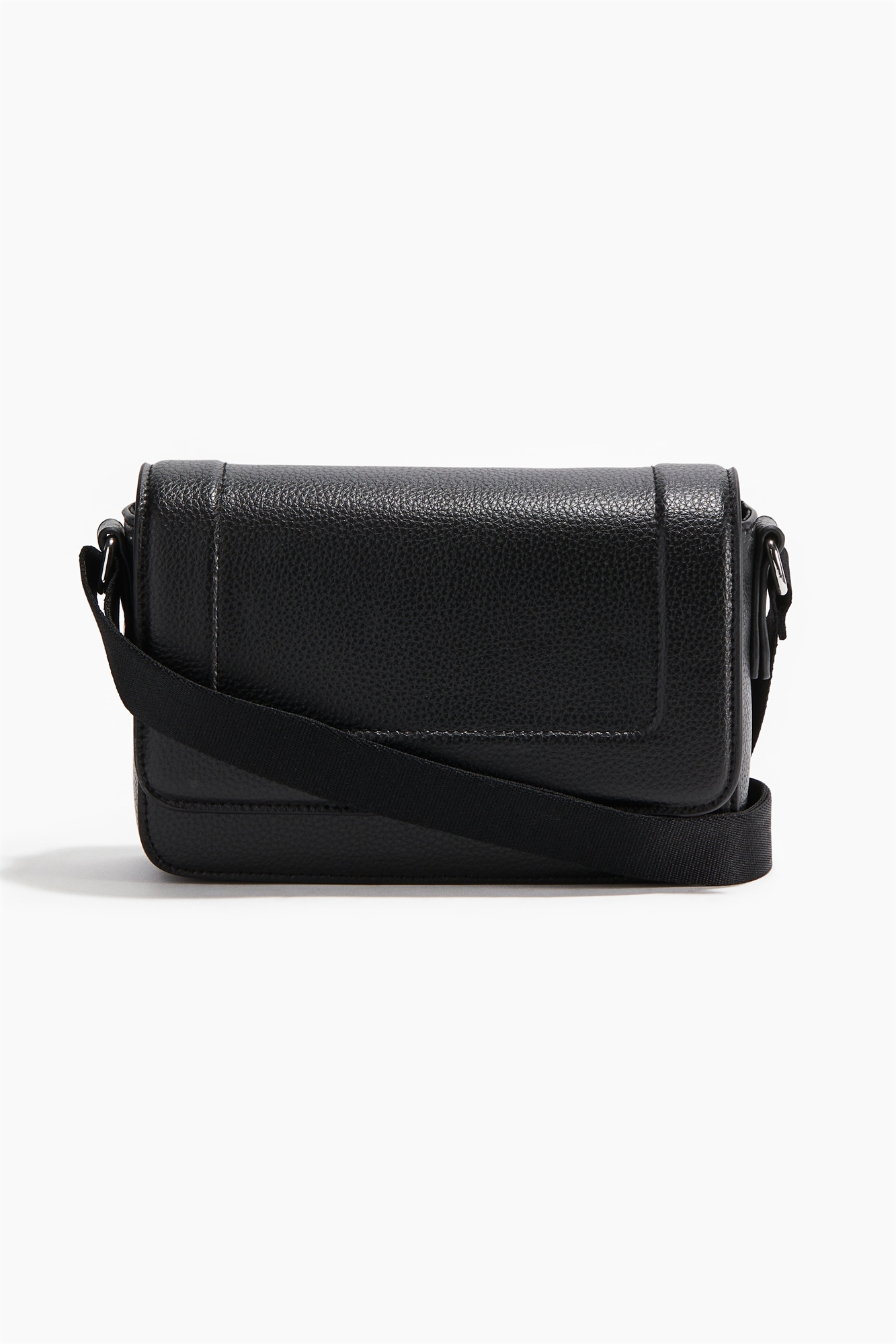 Сумка-кроссбоди из мелованной ткани с клапаном на магнитной застежке и регулируемым плечевым ремнем с застежкой-скобой. Внутреннее отделение на молнии. На подкладке.