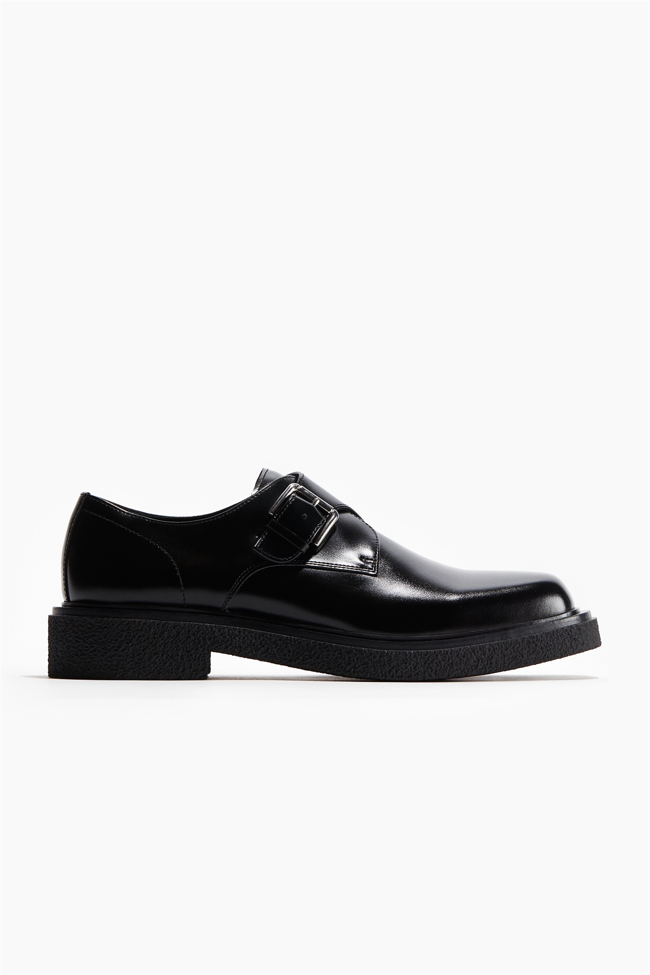 Монкстрапы с регулируемым язычком и металлической пряжкой, холщовые подкладка и стелька, подошва с узором.