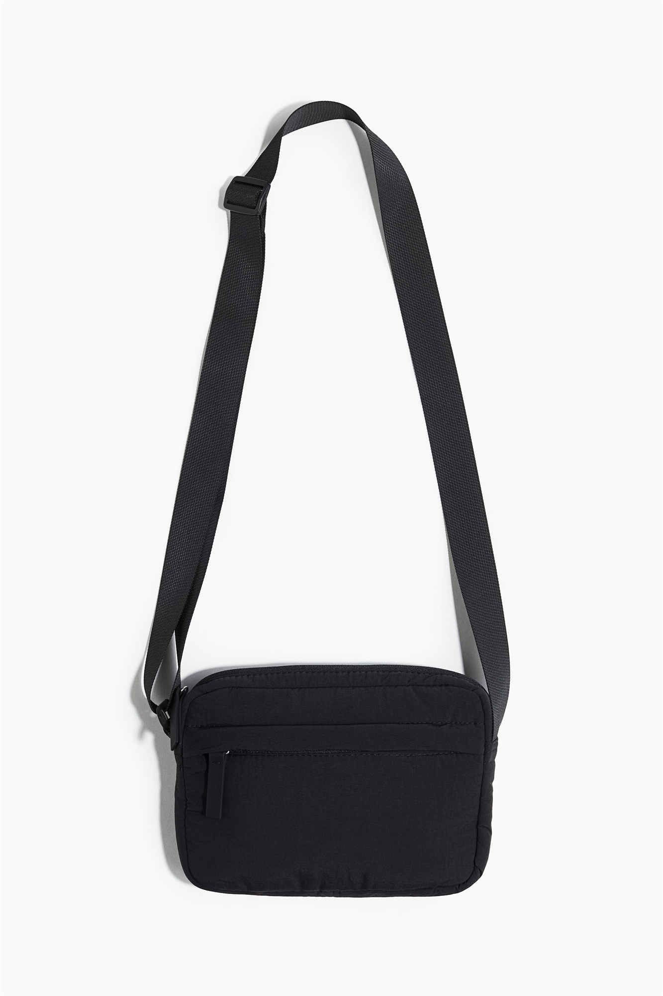 Сумка-кроссбоди из нейлона с застежкой-молнией в верхней части и регулируемым плечевым ремнем с металлической пряжкой. Внешнее отделение на молнии и два открытых внутренних отделения. На подкладке.