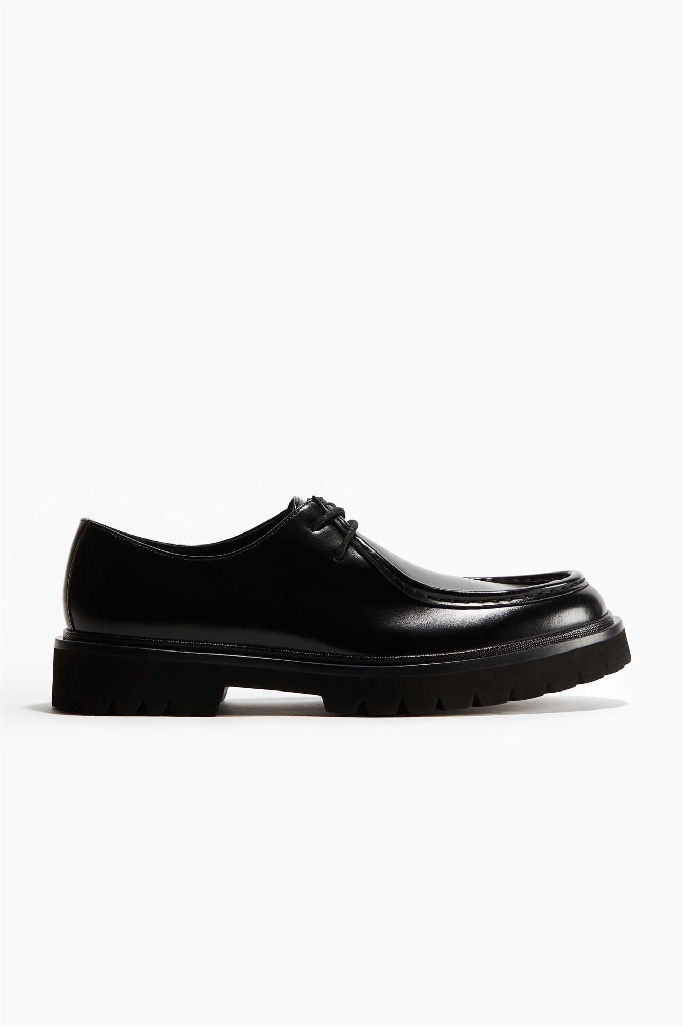 Ботинки со шнурками и мокасиновым швом спереди. Холщовая подкладка и толстая подошва с рисунком.