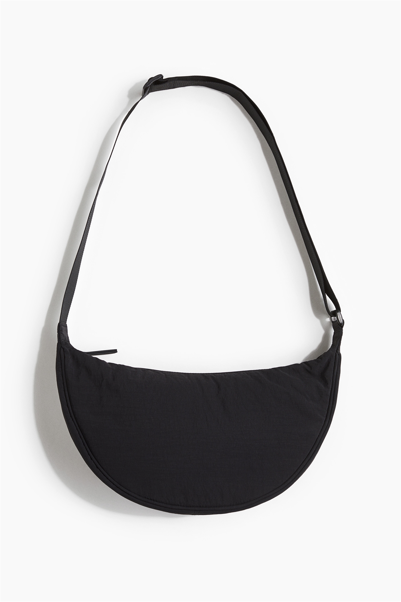 Сумка-кроссбоди из хрустящего нейлона с основным отделением на молнии и регулируемым плечевым ремнем из гросгрейн с пластиковой застежкой-скобой. На подкладке.