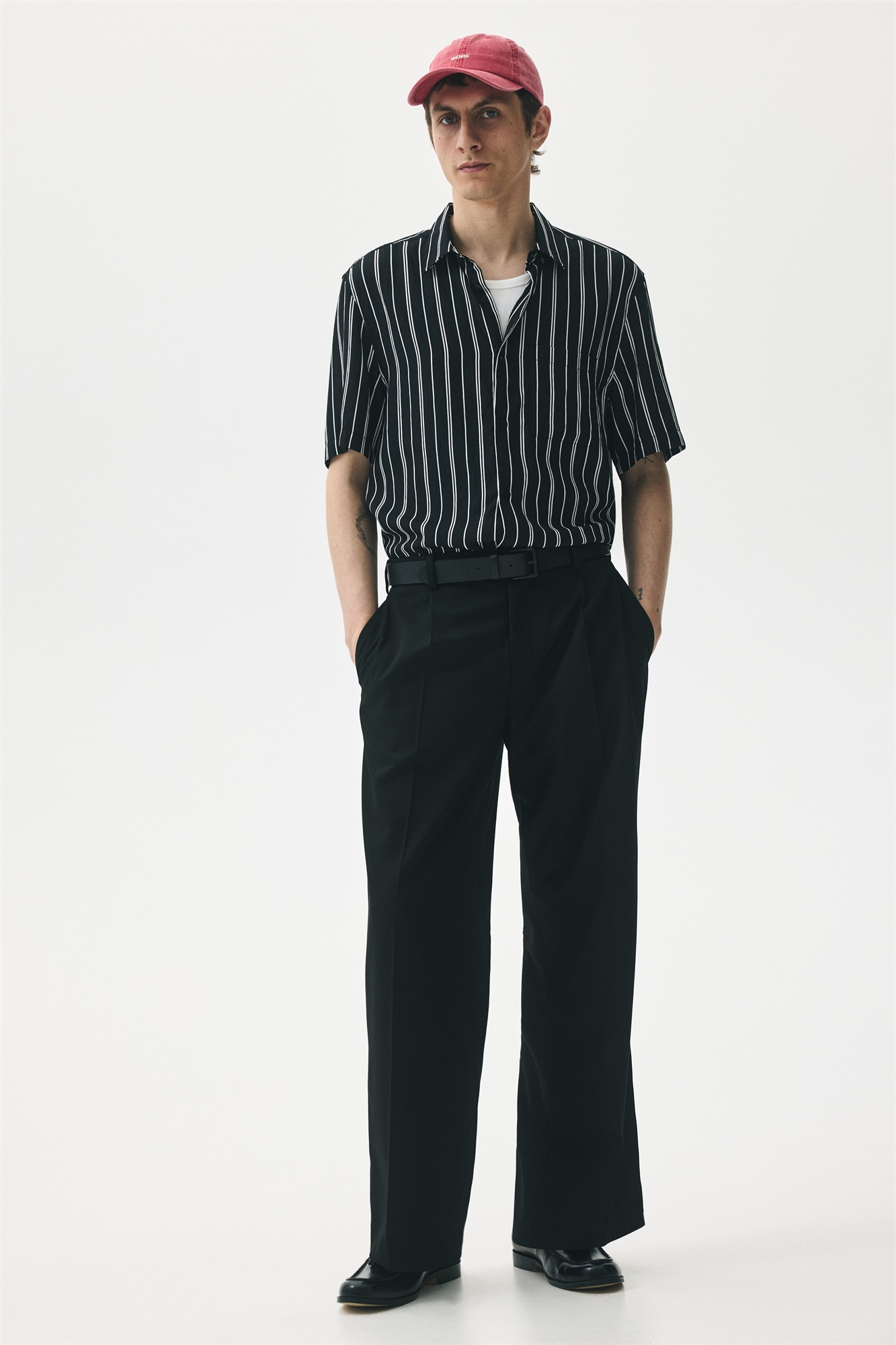 Рубашка с короткими рукавами из смеси вискозы и нейлона с драпирующимся плетением. Отложной воротник, классический перед, спинка и открытый нагрудный карман. Подол прямого кроя с накладными разрезами по бокам. Регулярный крой для комфортного ношения и классического силуэта.