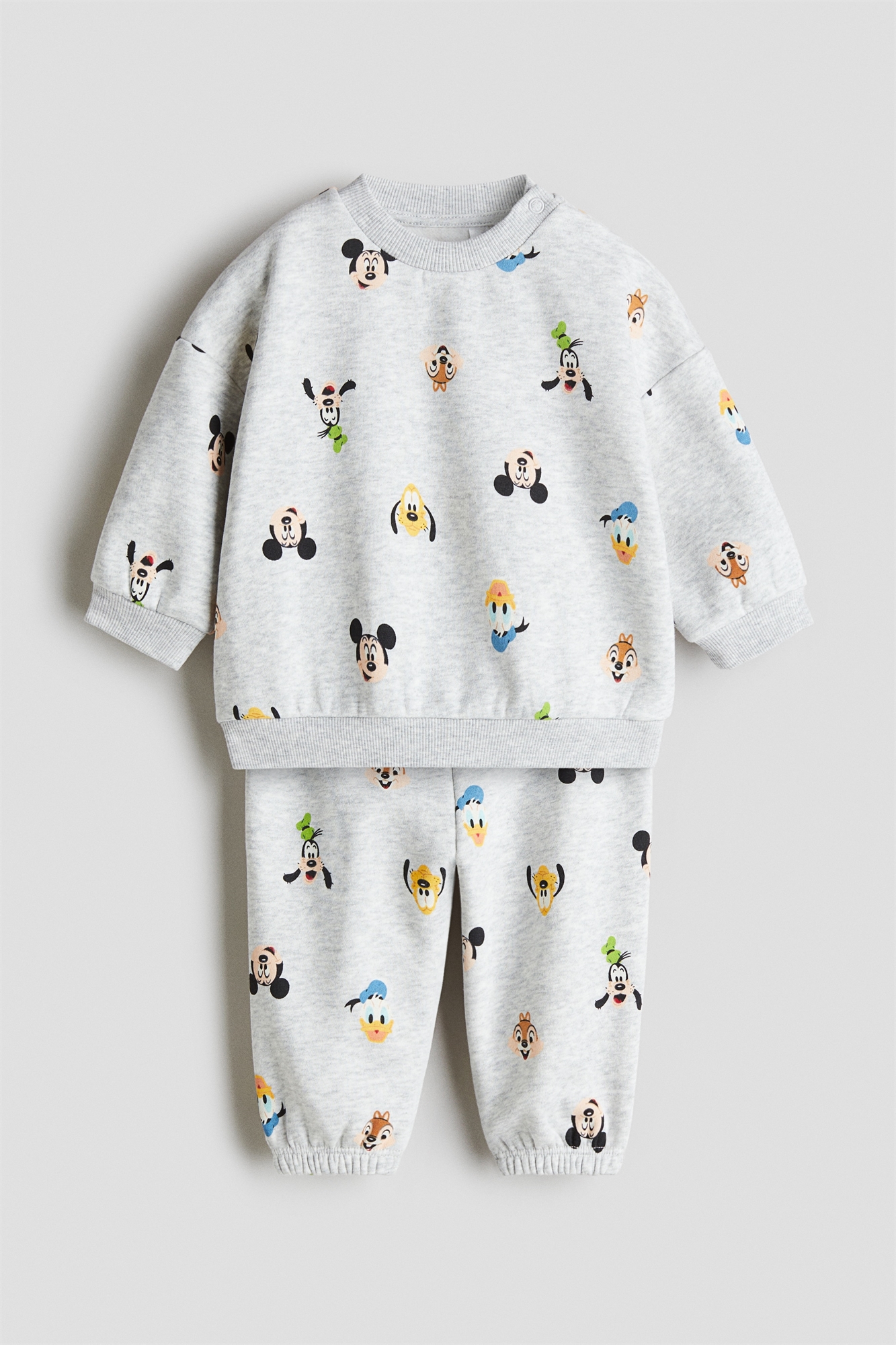 Комплект из топа и джоггеров из толстовки с мягкой ворсистой внутренней стороной. Топ с круглым вырезом в рубчик с прижимными кнопками с одной стороны (кроме размеров 2-4Y), спущенными плечами и окантовкой на манжетах и подоле. Джоггеры с регулируемой резинкой и декоративным шнурком на талии, а также с эластичной отделкой по подолу.