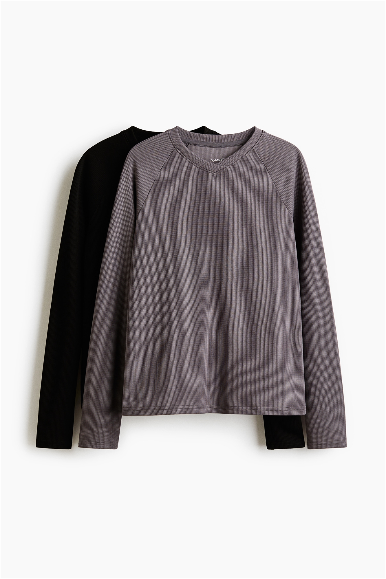 Спортивные топы из функциональной ткани с добавлением DryMove™, которая отводит влагу от кожи, обеспечивая комфортную сухость во время движения. Регулярный крой с V-образным вырезом и длинными рукавами реглан.