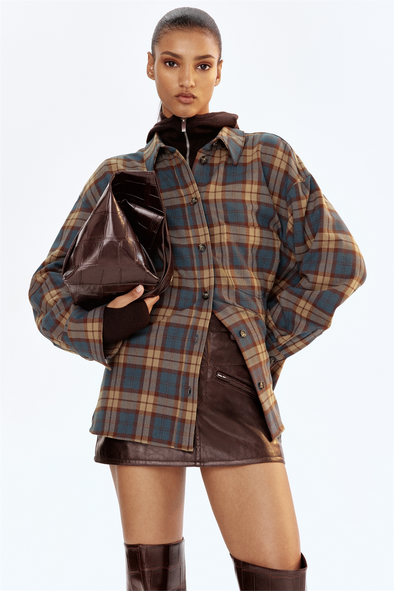 Рубашка оверсайз из мягкой фланели с воротником и пуговицами спереди. Открытый нагрудный карман, ярмо со складками сзади, спущенные плечи и длинные рукава с рукавной планкой и манжетами на пуговицах. Подол прямого покроя с загнутыми боковыми вентиляционными отверстиями.