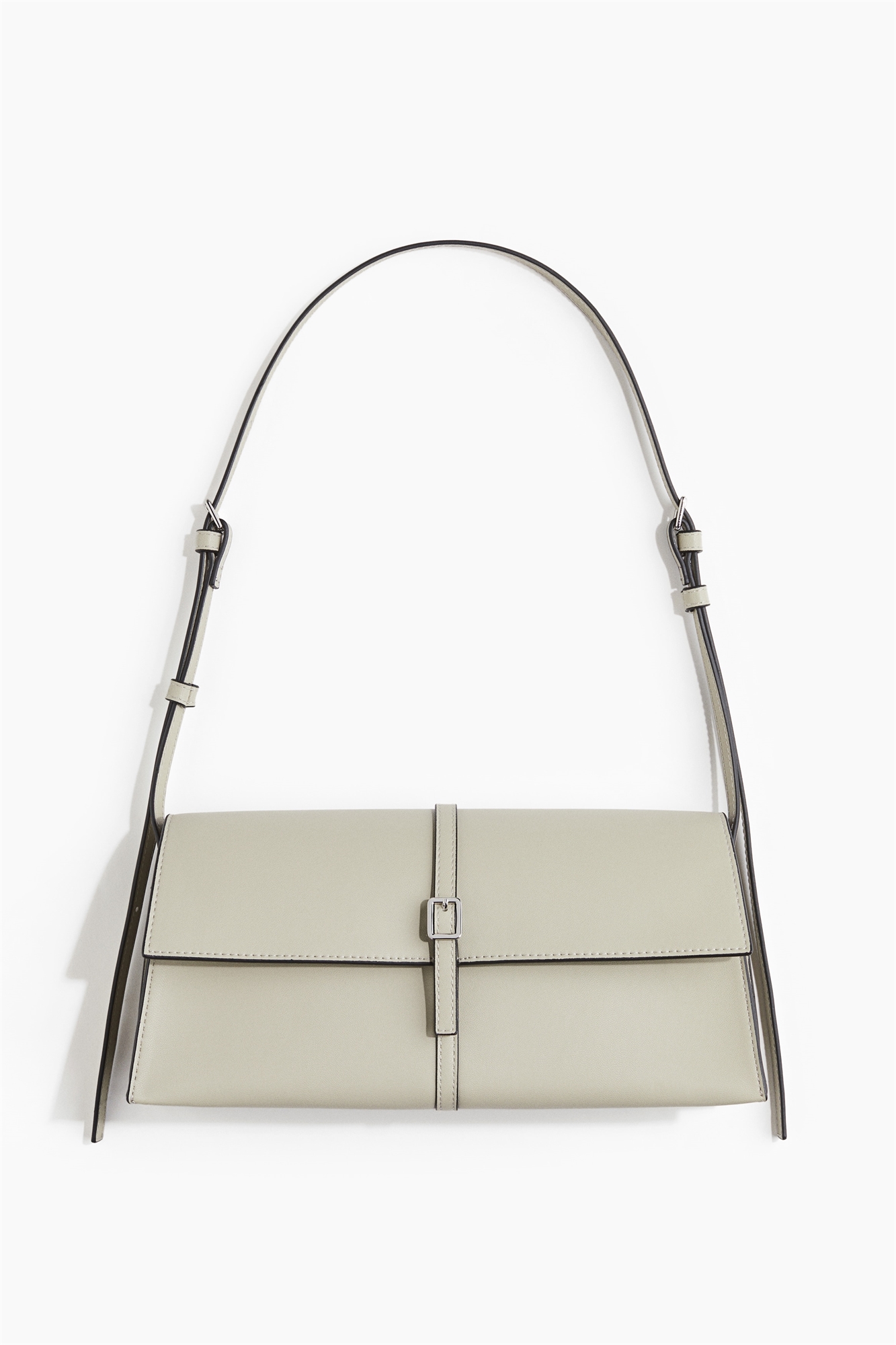 Сумка через плечо из ткани с покрытием и регулируемым плечевым ремнем. Откидная крышка со скрытой магнитной застежкой и декоративный ремешок с пряжкой спереди. На подкладке.