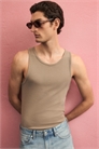 Майка из джерси в рубчик из смеси хлопка с прямым кроем подола. Зауженный крой, облегающий контуры тела и создающий приталенный силуэт.