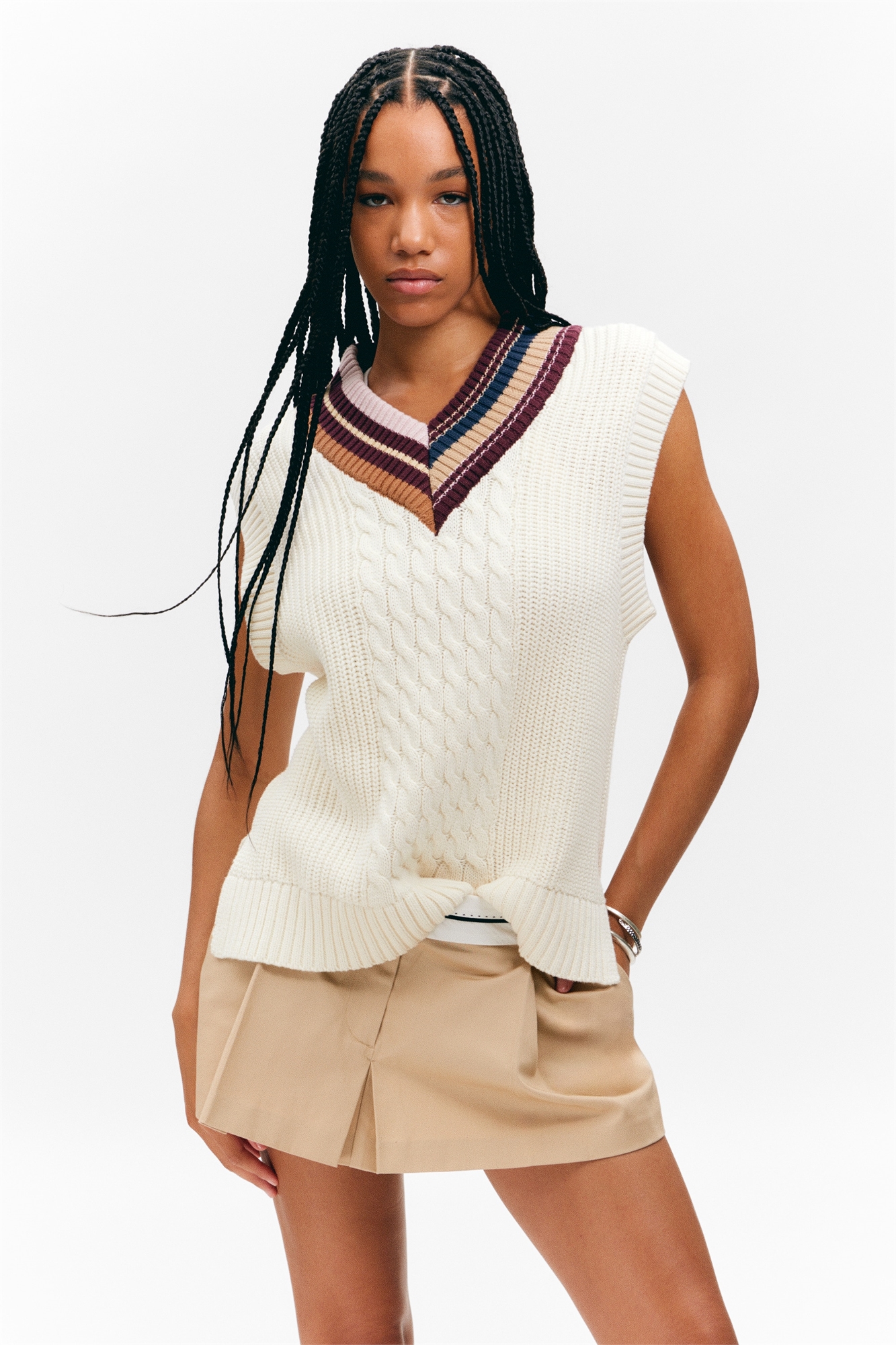 Хлопковый жилет с V-образным вырезом из кабельного трикотажа