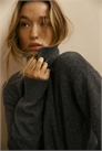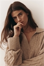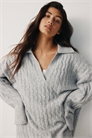 Джемпер-поло свободного кроя из мягкого трикотажа в рубчик с добавлением шерсти. Ребристый воротник и V-образная пройма спереди, спущенные плечи и длинные рукава с ребристыми манжетами. Ребристый подол с разрезом с каждой стороны.