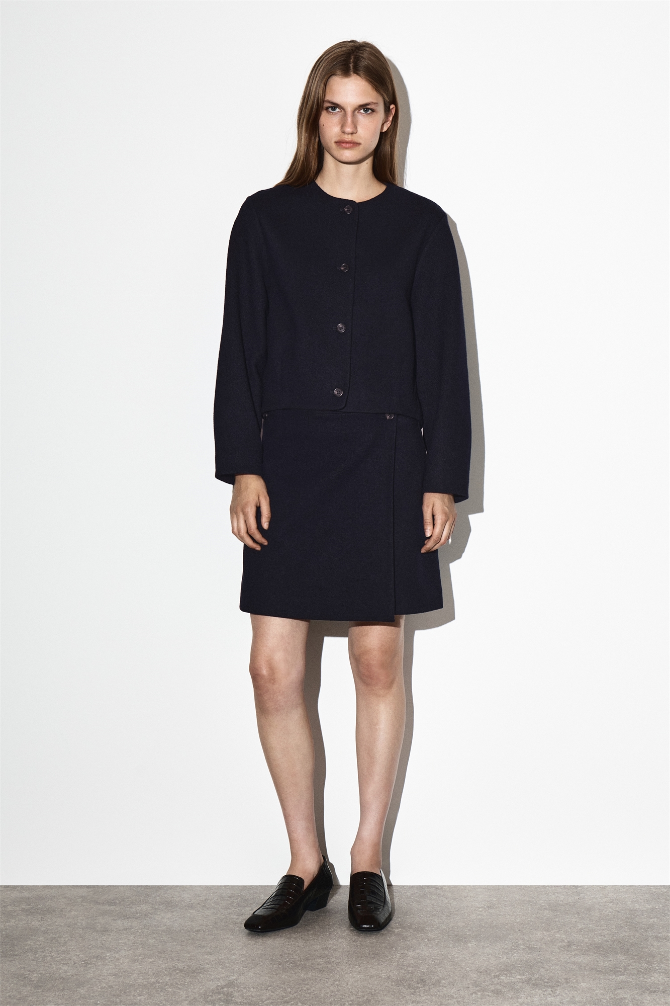 При создании этой мини-юбки команда женской одежды COS обратилась к минимализму 90-х годов. Она выполнена в классическом темно-синем цвете из первоклассной смеси мериносовой шерсти, которая варится для придания ей роскошного вида, и имеет облегающий силуэт. Сочетайте ее с кардиганом в тон. Плотный кройЗастежка на пуговицах и молнииЭто изделие содержит шерстяное волокно Responsible Wool Standard TE-00047206 (RWS), полученное с ферм, сертифицированных в соответствии с требованиями к благополучию животных и управлению землей Материал: 50% мериносовой шерсти, 32% хлопка, 18% переработанного полиэстера. Подкладка: 100% хлопок. Без учета отделки / Сухая чистка Длина по спинке для размера S составляет 44,5 см / Модель носит размер S