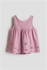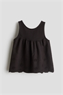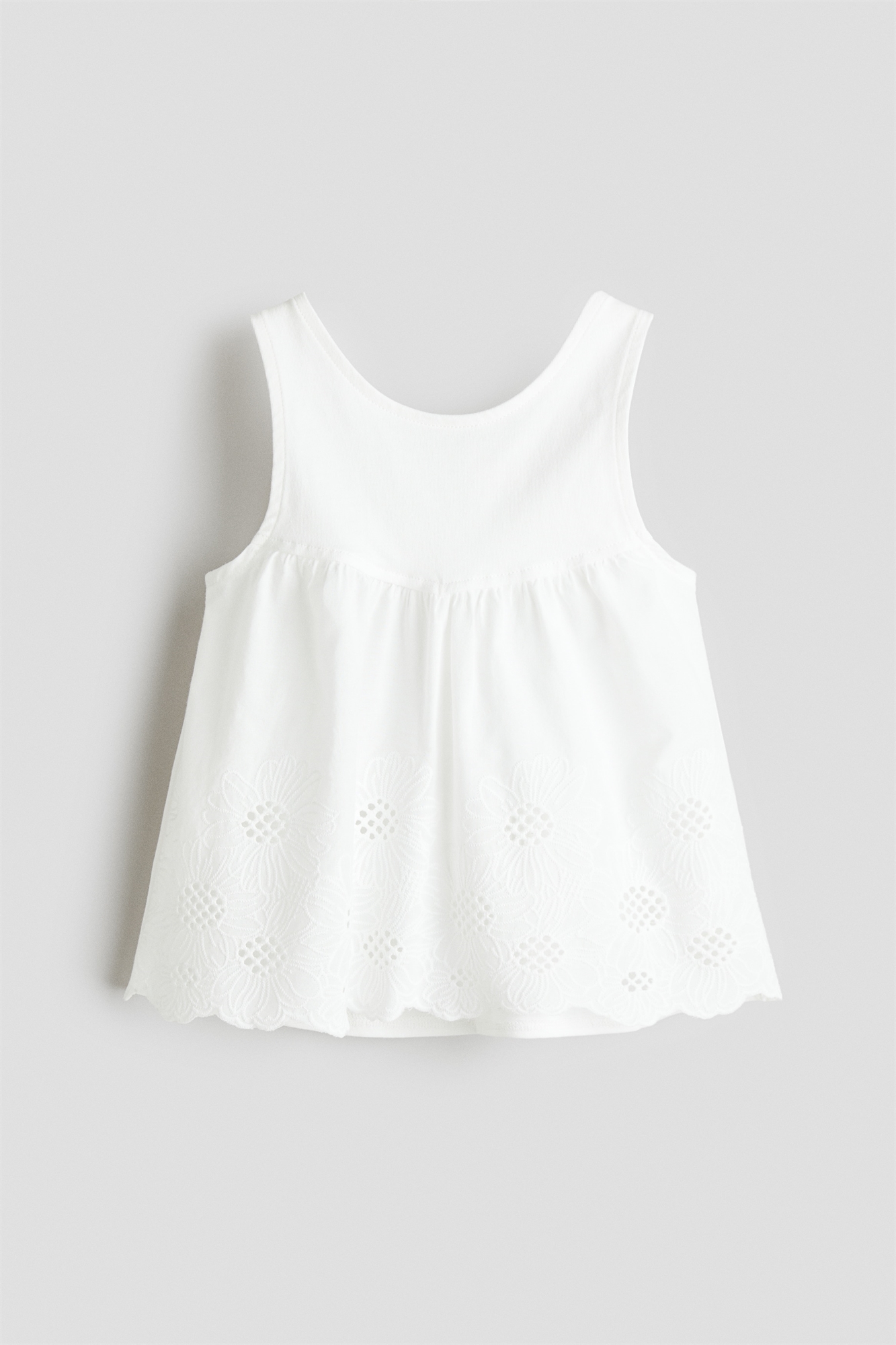 Топ без рукавов из хлопкового джерси с передней частью из воздушного переплетения с бродери-англиз. Круглый вырез, сборка по шву над талией и обрезной подол спереди.