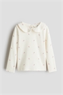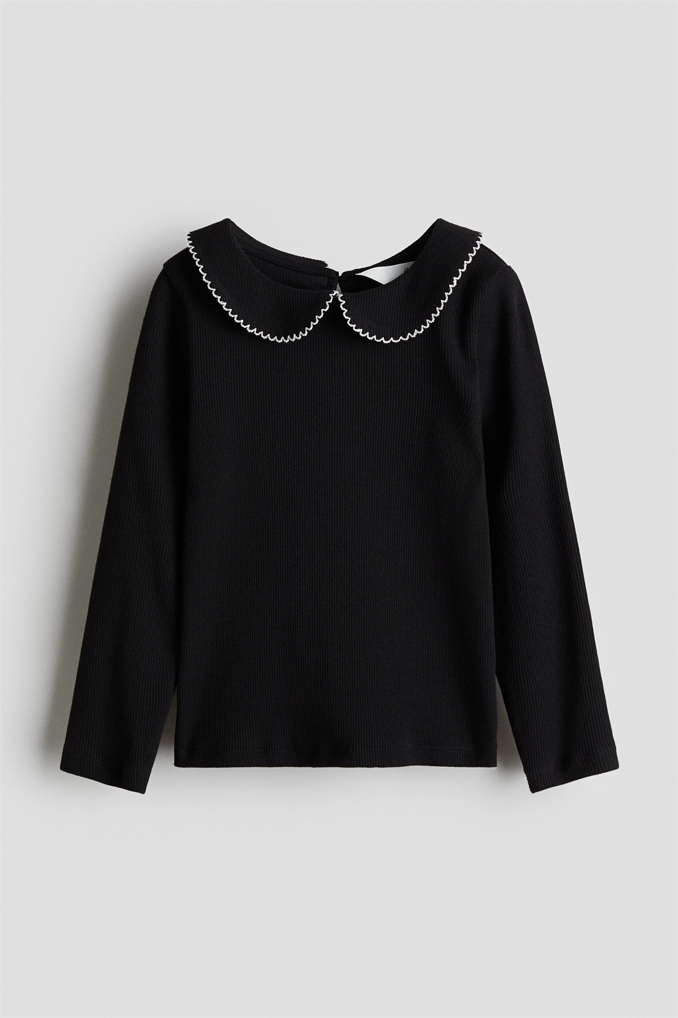Топ с длинными рукавами из мягкого, ребристого хлопкового джерси. Круглый вырез, воротник с отделкой пико и отверстие для ключа с пуговицей сзади.