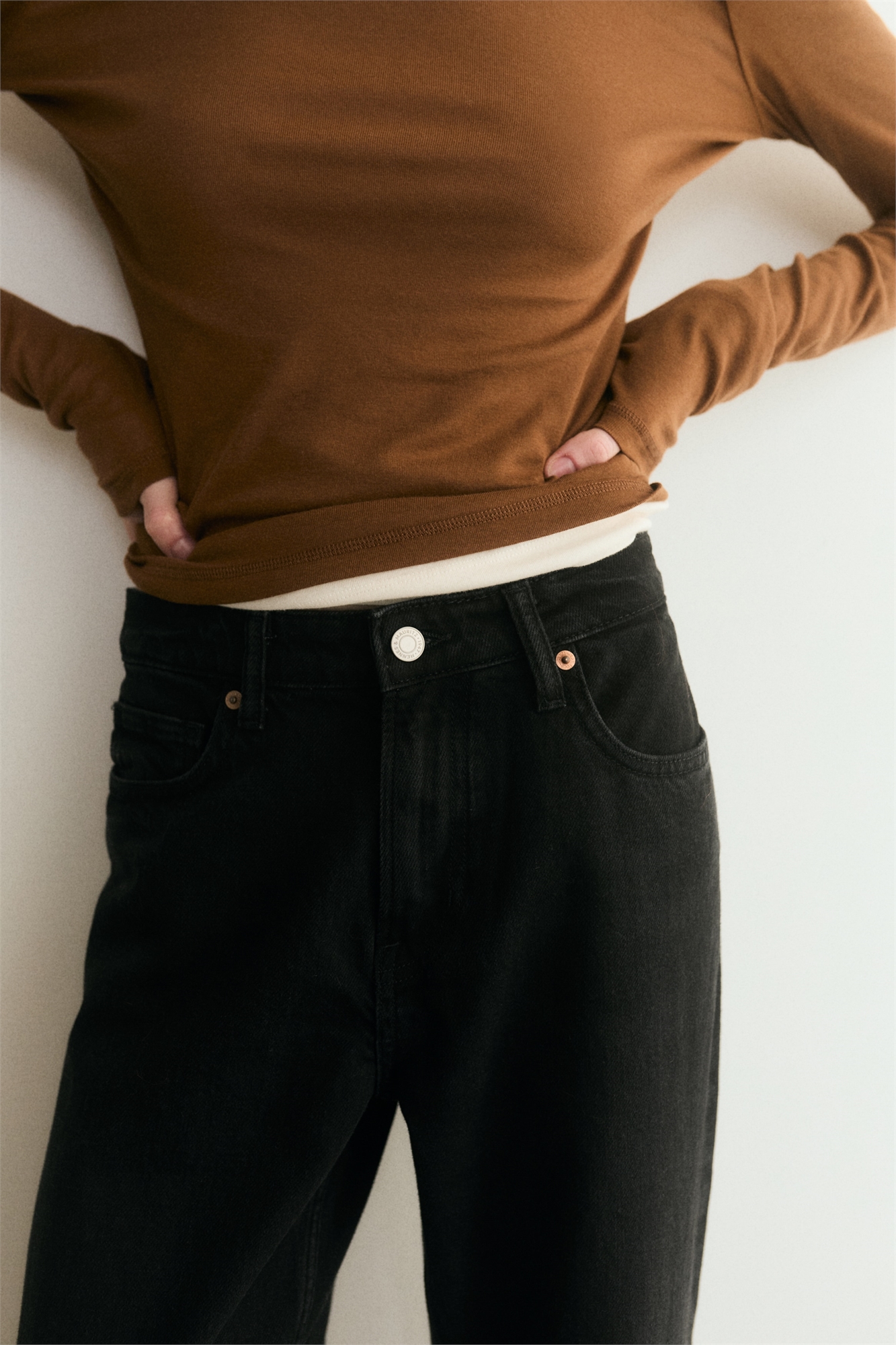 Джинсы с 5 карманами из жесткого хлопкового денима, который сначала кажется упругим, но затем смягчается и ослабевает по мере носки. Широкие штанины с обычной посадкой от талии до бедер и широким кроем от бедра до подола. Регулярная талия с ширинкой на молнии и пуговице. Удлиненная длина, созданная для того, чтобы опускаться на ногу с эффектом укладки. Джинсы с широкими штанинами - незаменимая вещь в гардеробе.