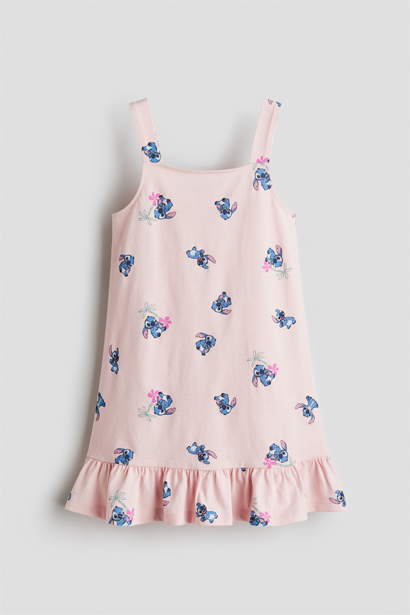 Платье A-line без рукавов из мягкого хлопкового джерси с принтом на всю длину. Квадратный вырез, бретели и подол с оборкой.