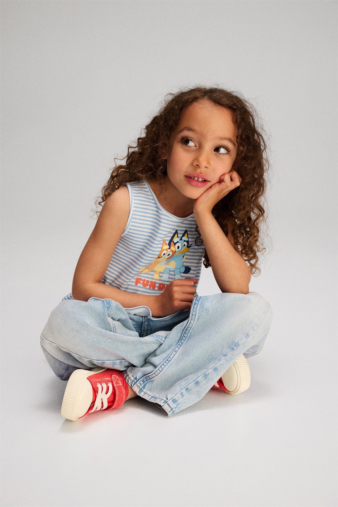 Топ без рукавов из мягкого хлопкового джерси с принтом. Круглый вырез с прорезью для ключа и пуговицей сзади, расклешенная кокетка.