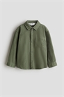Рубашка из мягкого хлопкового вельвета с накладным нагрудным карманом. Отложной воротник, пуговицы спереди, спущенные плечи и длинные рукава с манжетами на пуговицах.