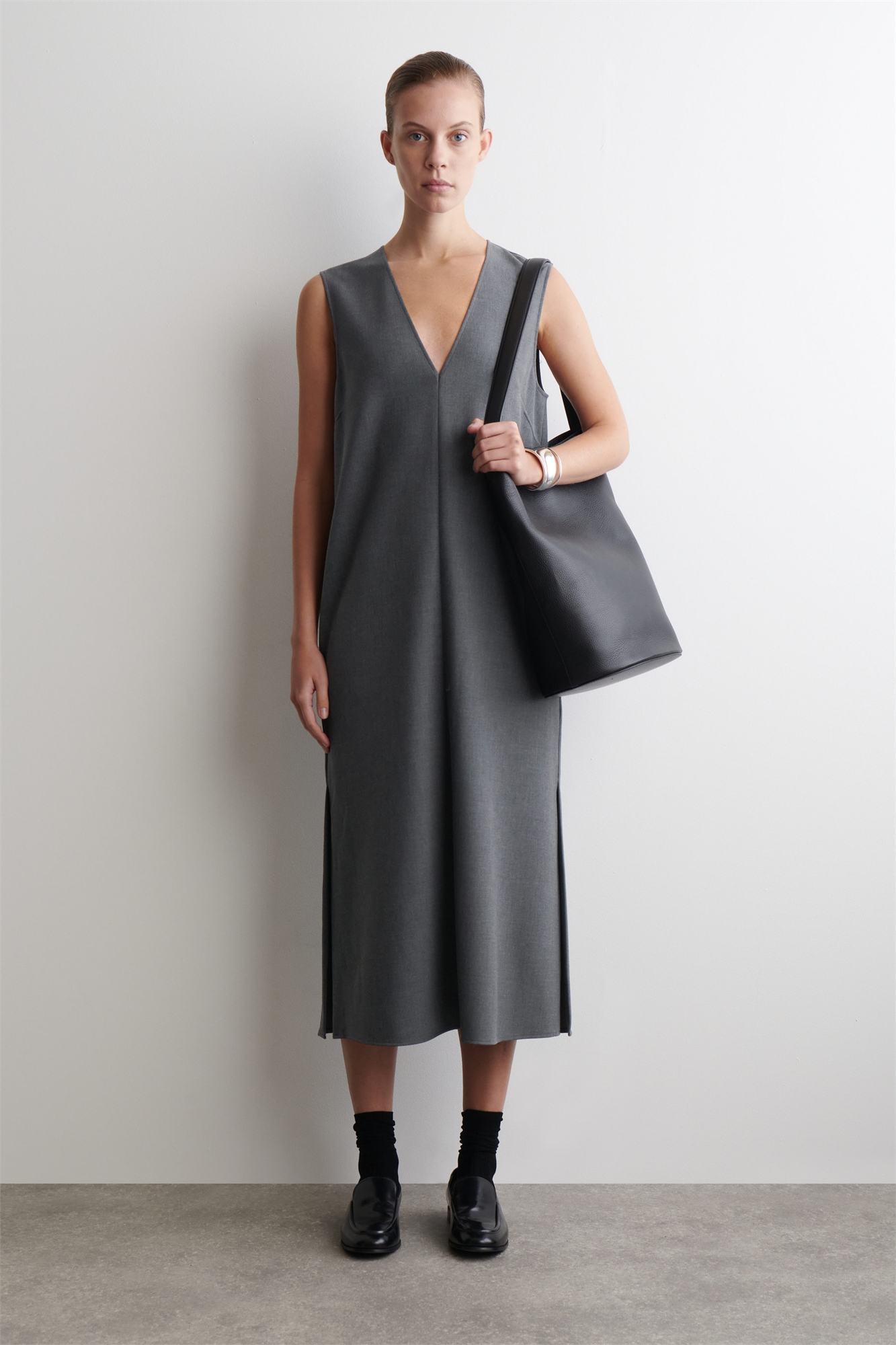 В этом сезоне команда женской одежды переосмысливает классику в современном ключе. Это пестрое серое платье-миди имеет облегающий силуэт, V-образный вырез и разрез на подоле. Играйте с пропорциями и носите его поверх подходящих брюк. Regular fitЗастежка на крючок и планку и молниюПереработанный полиэстер - это полиэстер, изготовленный из ПЭТ-бутылок или текстильных отходов. ПЭТ-бутылки или текстильные отходы подвергаются механической переработке и перерабатываются в новую пряжу Внешний материал: 61 % переработанного полиэстера, 33 % вискозы ECOVERO™, 6 % эластана. Подкладка карманов: детали не учитываются/Машинная стирка Длина по спинке в размере 36 = 66 см/Модель носит размер 36