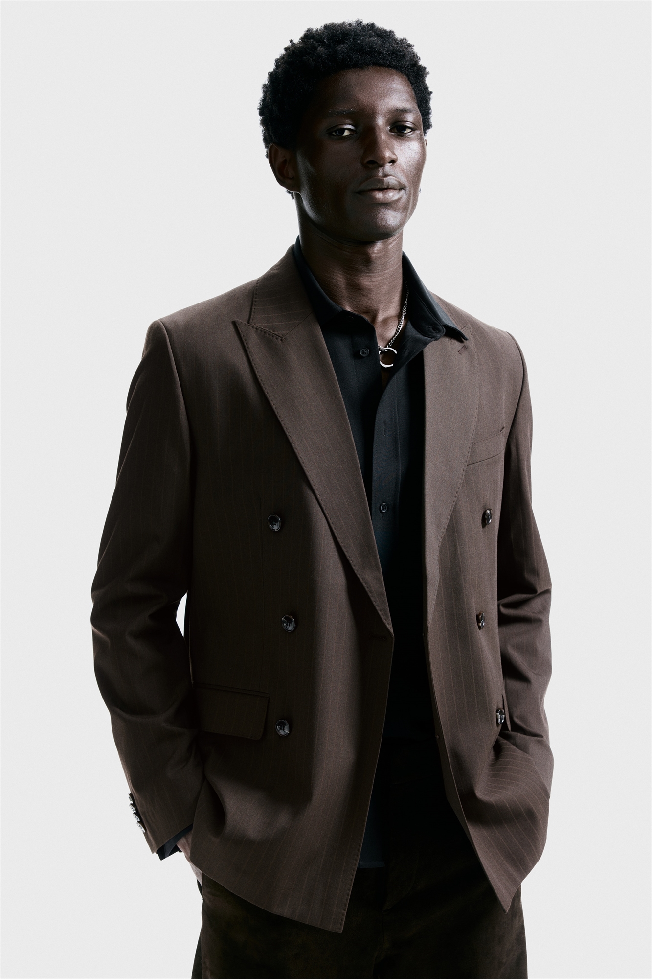 Двубортный пиджак из мягкой ткани. Лацканы с пике и декоративной петлей для пуговицы, нагрудный карман, передние карманы с клапаном и три внутренних кармана. Декоративные пуговицы на манжетах и двойной задний клапан. Регулярный крой для комфортной носки и классического силуэта. На подкладке.