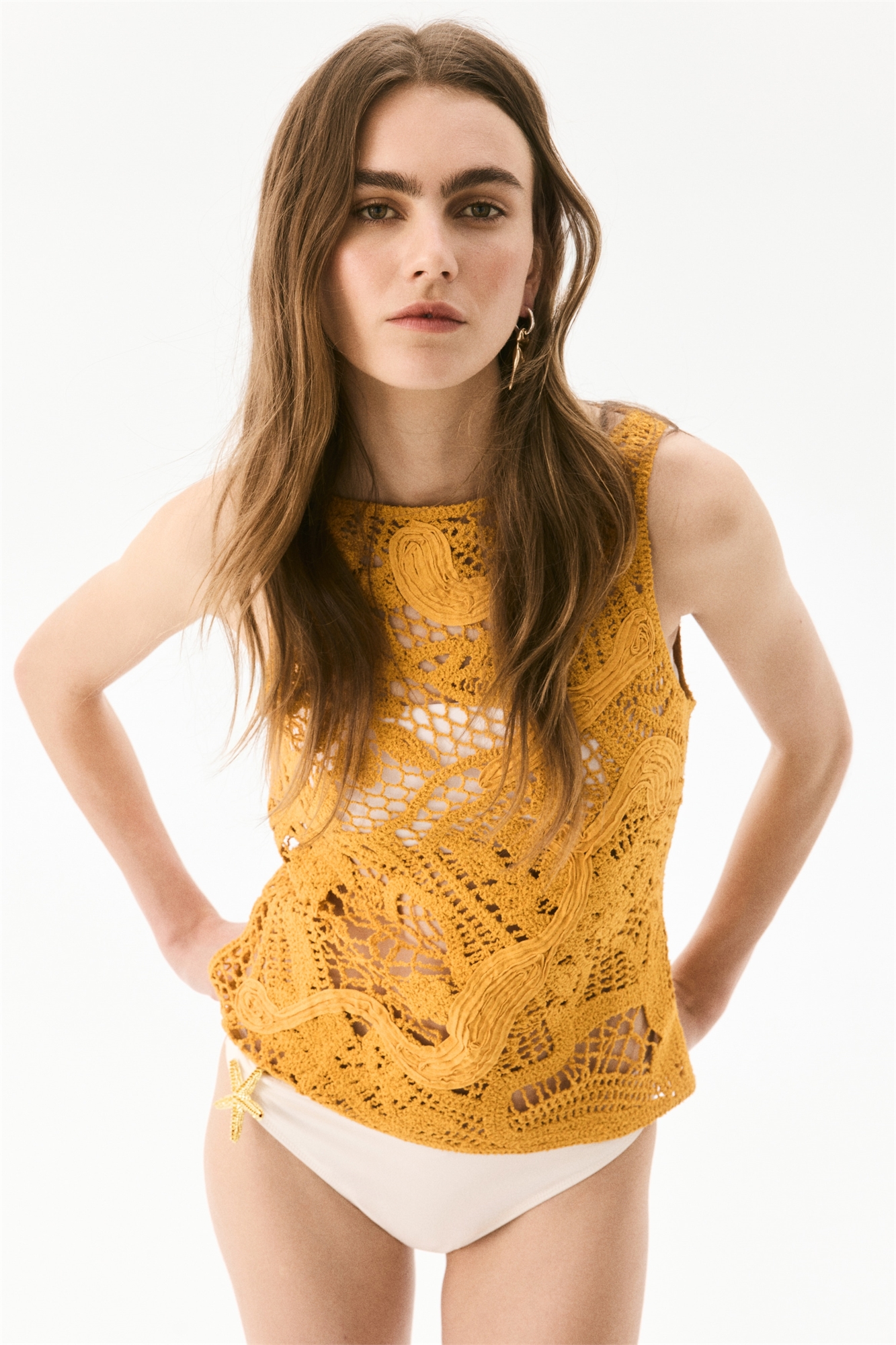 Облегающий топ из вязаного трикотажа из смеси хлопка. Вырез-лодочка и прямой подол.