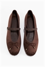 Атласные балетки в стиле Мэри Джейн с закругленными носками со складками, узким декоративным бантом спереди и эластичным ремешком на ноге. Атласная подкладка.