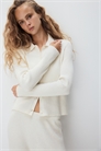 Приталенный кардиган из мягкого трикотажа в рубчик с воротником и пуговицами спереди.